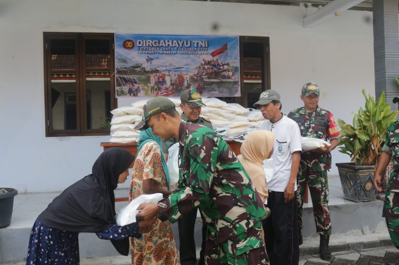 Baksos HUT ke 80 TNI, Kodim Ponorogo Bagikan Ribuan Paket Sembako Kepada Warga