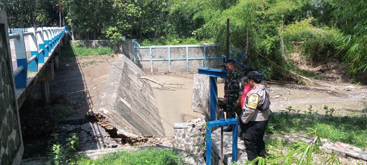 Polsek Slahung Bhabinkamtibmas Dan Babinsa Cek Lokasi Tanggul Dam Sungai Miren Rusak Tergerus Aliran Sungai