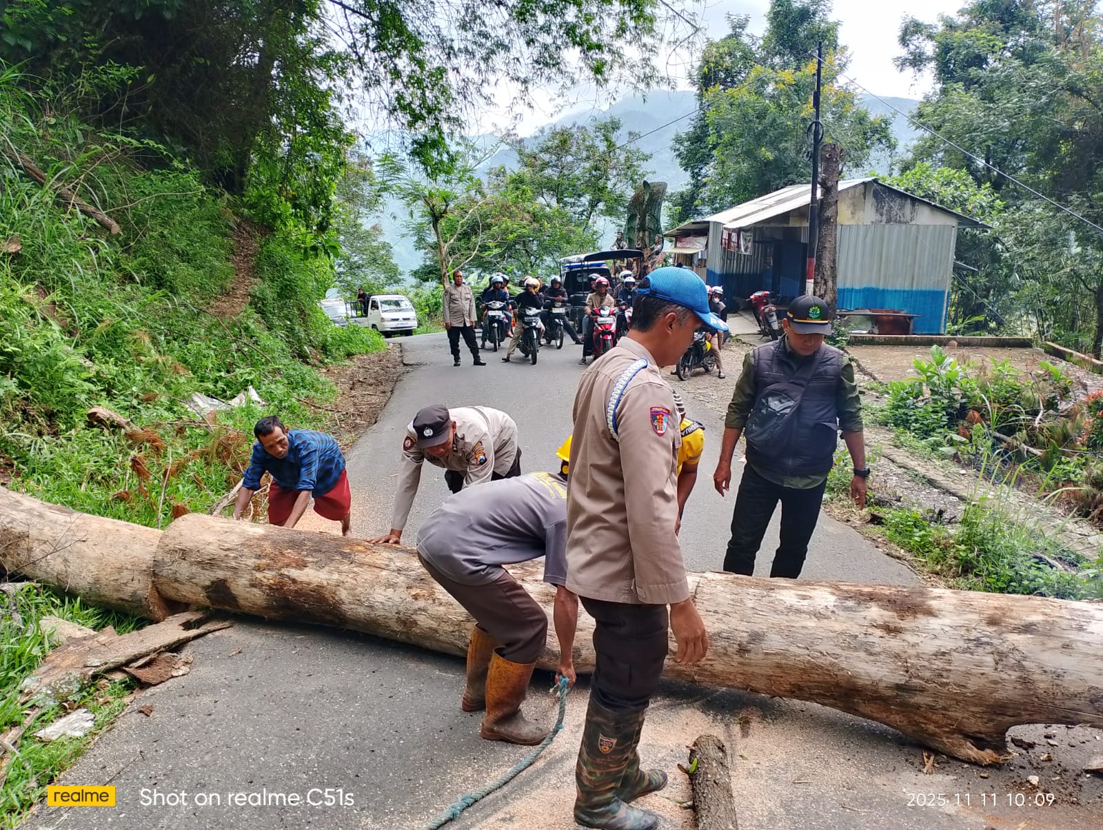 POLSEK NGRAYUN GELAR AKSI PEMBERSIHAN POHON KERING DEMI KESELAMATAN PENGGUNA JALAN