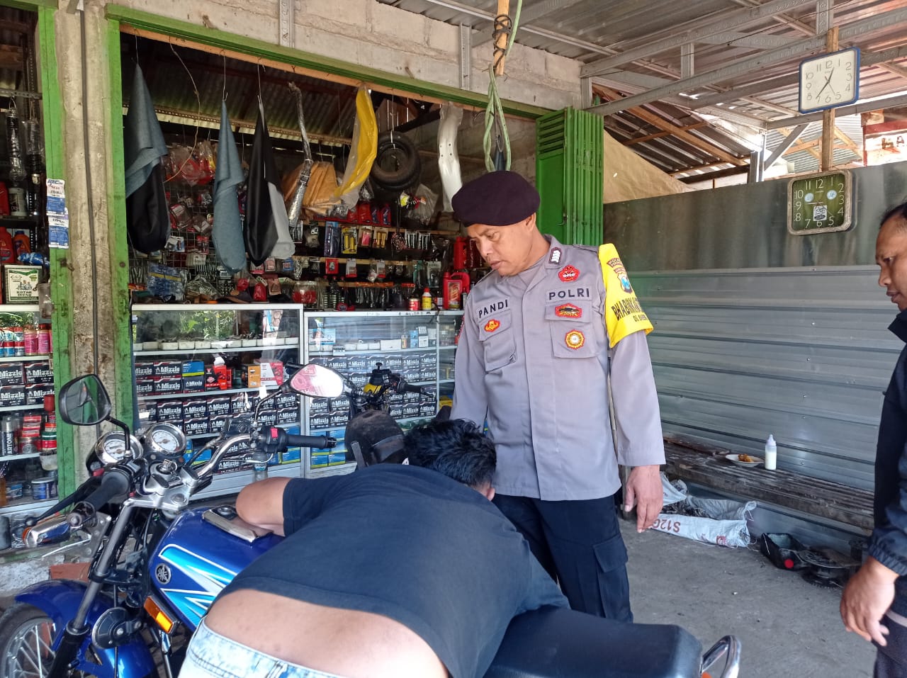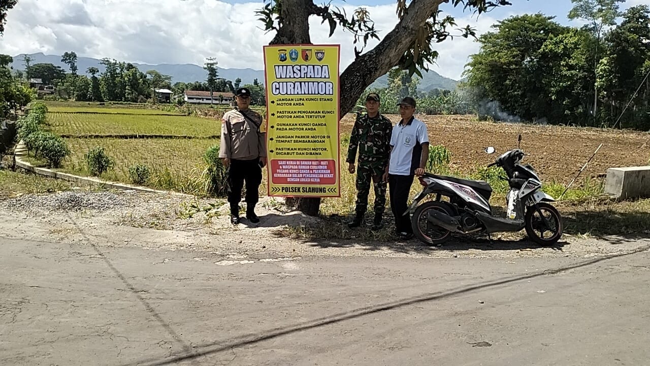 Bhabinkamtibmas Polsek Slahung Pasang Banner Himbauan Waspada Curanmor di Desa Gombang