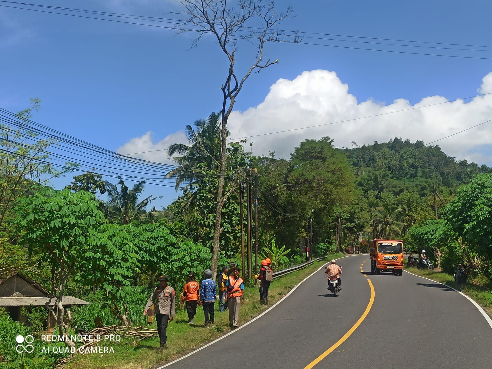SIAGA BENCANA KECAMATAN SAWOO LAKSANAKAN PEMANGKASAN POHON RAWAN TUMBANG DI JALUR NASIONAL PONOROGO–TRENGGALEK