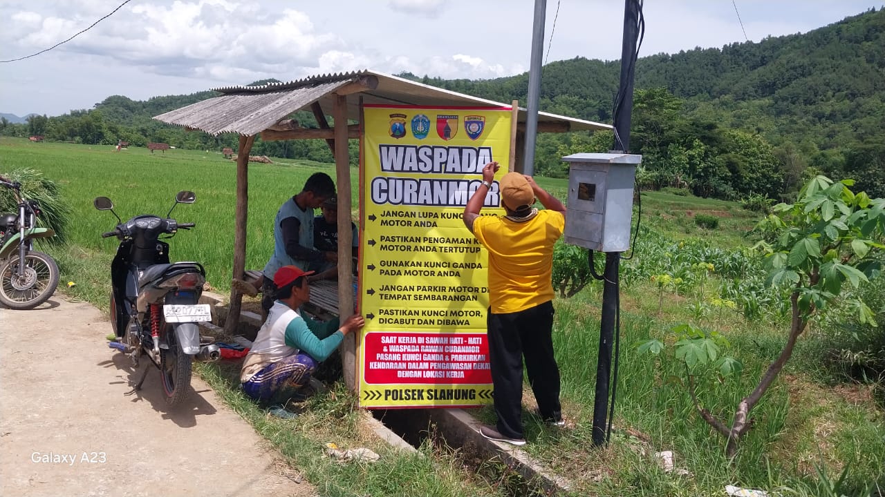 Polsek Slahung Pasang Banner Himbauan Kamtibmas Waspada Curanmor
