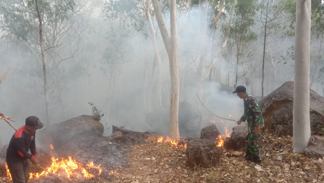 Reaksi Cepat Babinsa Kodim Ponorogo Bantu Padamkan Kebakaran Hutan