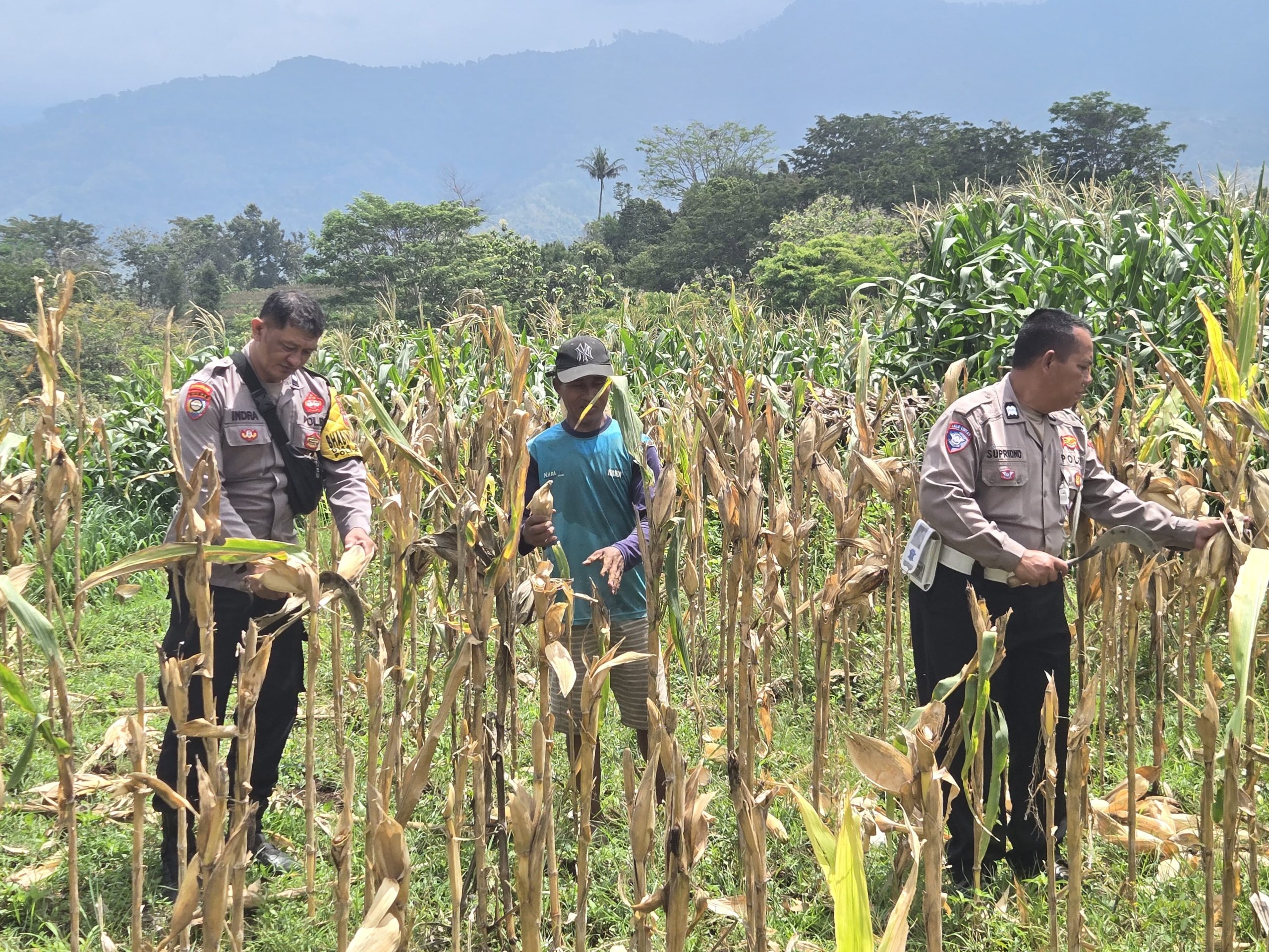 Bhabinkamtibmas Desa Banaran Monitoring Tanaman Jagung Hibrida Bhayangkara, Dukung Program Ketahanan Pangan Nasional