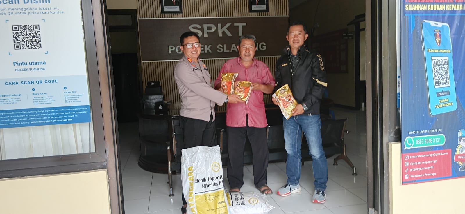 Polsek Slahung Dukung Ketahanan Pangan,Dengan menyerahkan Bibit Jagung Bhayangkara Hibrida Kepada Ketua Gapoktan Di Wilayah Kec Slahung