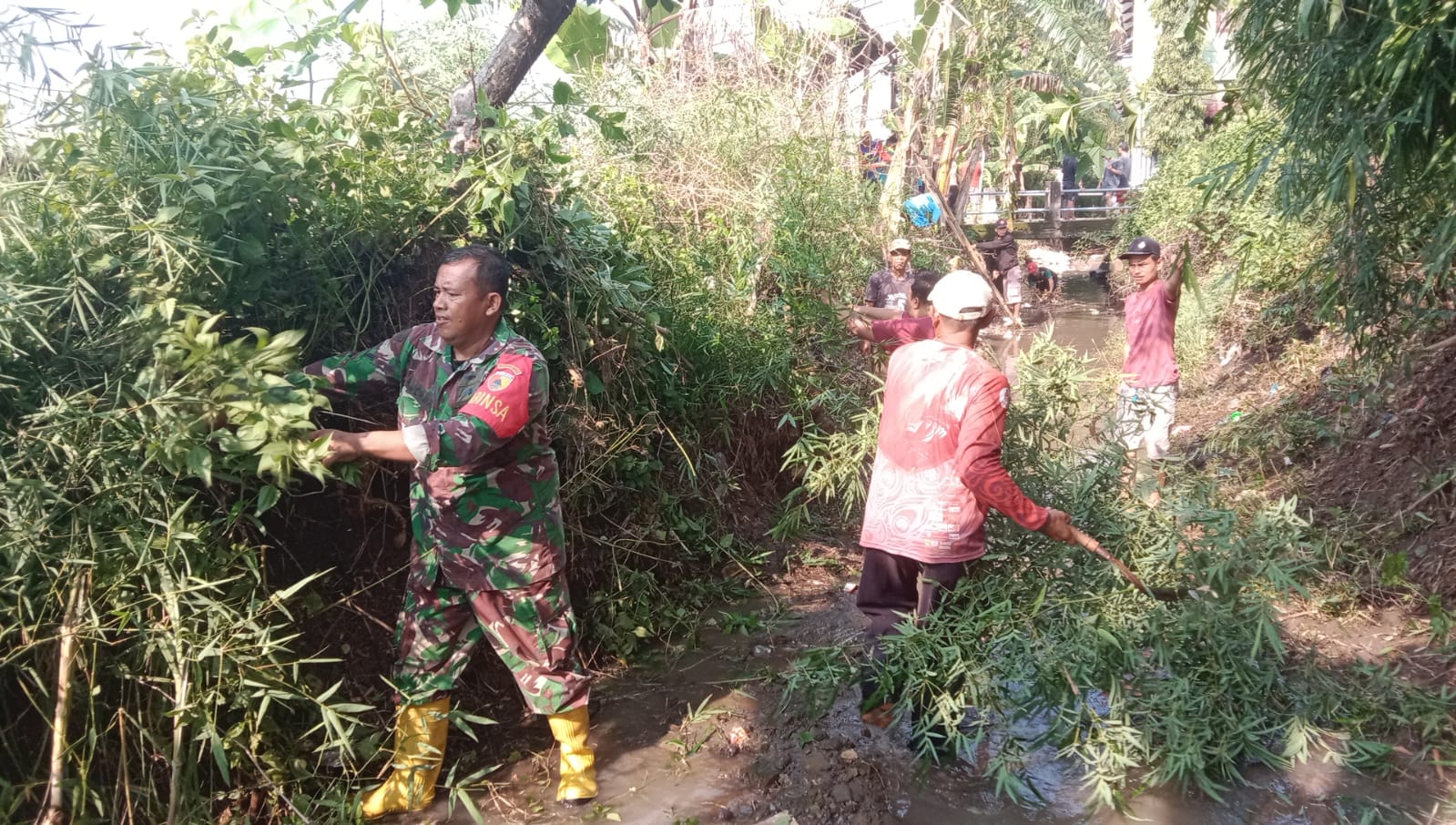 Babinsa Kodim Ponorogo Peduli Lingkungan, Bantu Warga Bersih Bersih Sungai