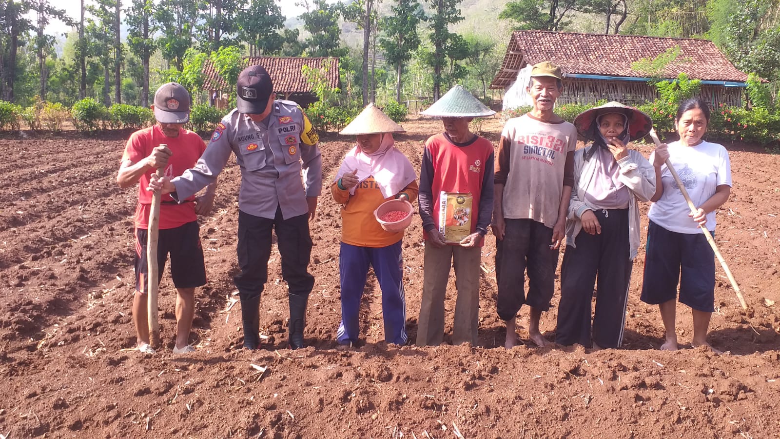 Bhabinkamtibmas Desa Prayungan Polsek Sawoo Dukung Program Ketahanan Pangan Melalui Penanaman Jagung